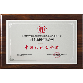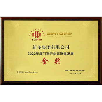 Gold Award for high quality development of the door and window industry