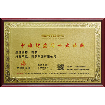 China's top ten brands of security doors certificate
